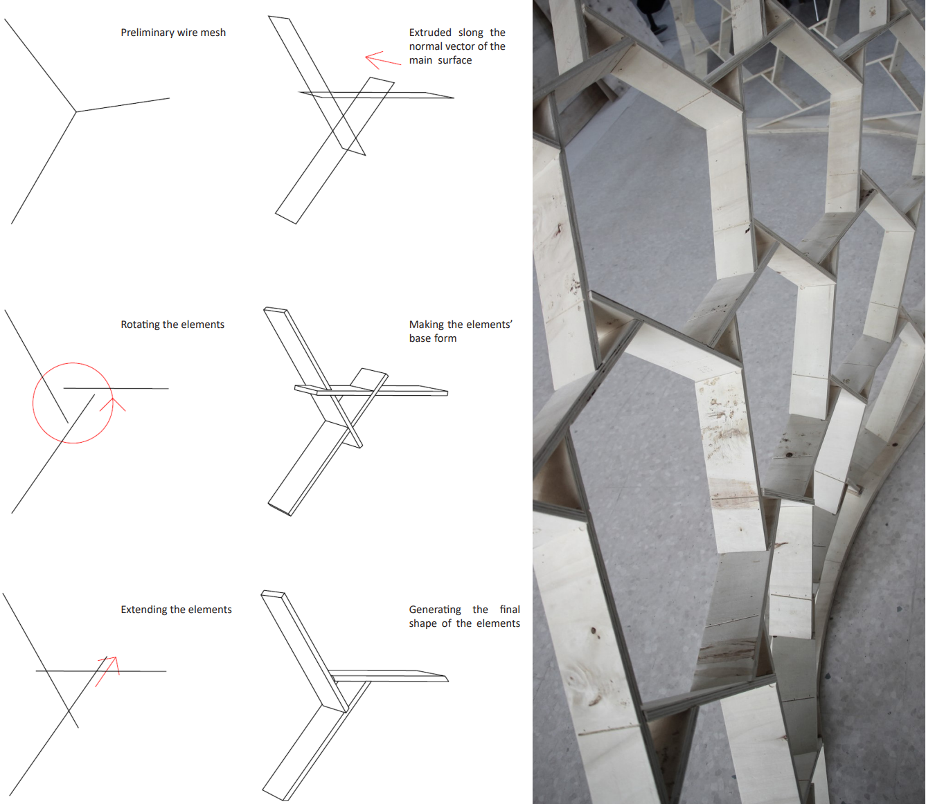 پـس از آمـاده شـدن مـدل مـورد نظـر، تیـم طراحـی تـاش کردنـد تـا code-G مـورد نیـاز را تولیـد کـرده تـا بتواننـد قطعـات تشـکیل دهنـدهی سـازه را بـه وسـیله ی دسـتگاه milling CNC در زاویـه هـای مشـخص بـرش بزننـد. سـپس پلیـت هـای اولیـه ی سـازه روی زمیـن قـرار داده شـده و پـس از آن دانشـجویان قطعـات را در جـای مشـخص شـده در مـدل نصـب کردنـد.