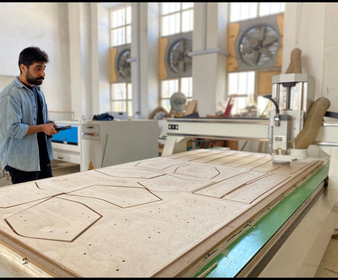 در این راستا دانشجویان علاوه بر آشنایی و استفاده از ابزارهای ساخت دیجیتال همچون برش لیزر و دستگاه برش سیانسی، با نحوه کارکرد و استفاده از ابزارهای دستی موجود کارگاه آشنا شده و از ابزارهای ساخت دستی نیز در مرحله تولید قطعات استفاده نمودند.