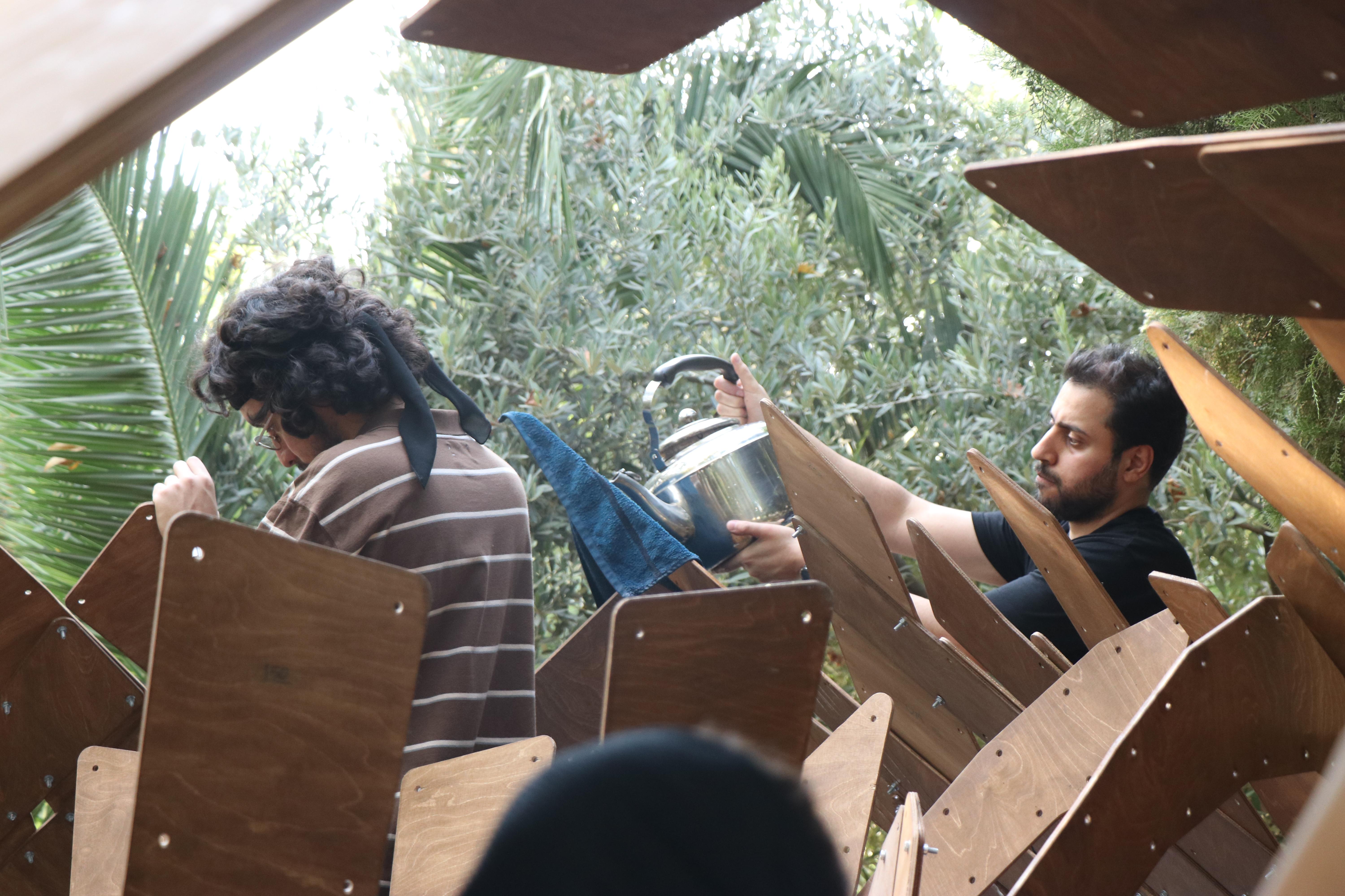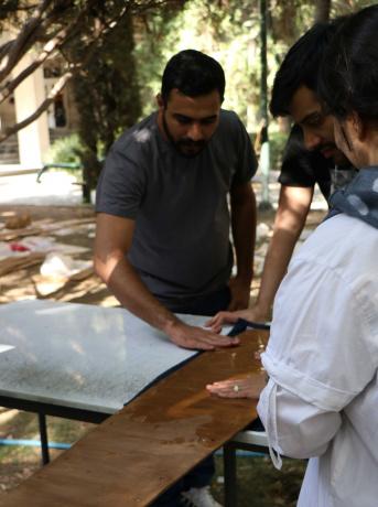 دانشجویان در فرآیند تولید قطعات به کمک دستگاه CNC سهمحوره، پرداخت و سرهمکردن قطعات، تجربه متنوعی از فرآیند ساخت دیجیتال را کسب نمودند. محصول نهایی کارگاه که سازه ای با خم-فعال است و "کاویون" نام دارد، در محوطه پردیس هنرهای زیبا دانشگاه تهران برپا گردید.